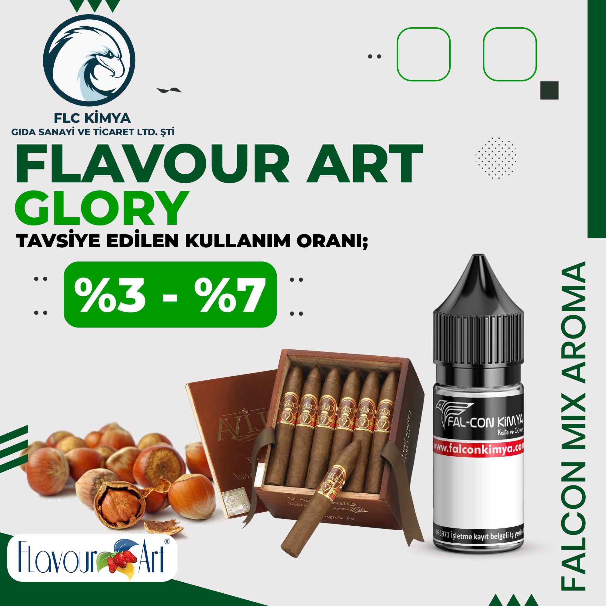 Tavsiye edilen kullanım oranı: %3-%7 (Kişiden Kişiye Değişiklilik gösterdiği için (Flavour Art) Firması tarafından kullanım oranı verilmemiştir. Kullanım oranları recipes sitesinden alınmıştır..)